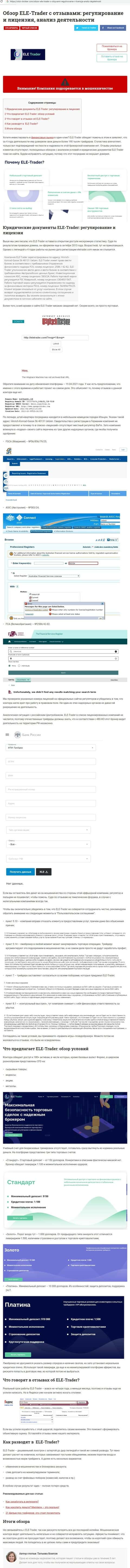 - Обзоры, разоблачающие иллюзорного валютного брокера ЕЛЕ Трейдер, найденные в интернете