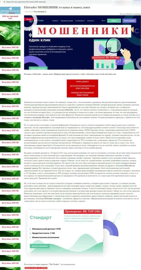 Шулерам из шарлатанского проекта ELETrader не доверяют вкладчики и считают лохотроном