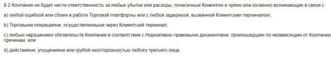 В пункте 8.2. клиентского договора перечисляется целый перечень, в случае наступления которых лжеброкер ЕЛЕ Трейдер не будет отвечать перед валютными пользователями. Развод.