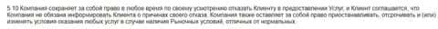Пункт 5.10. свидетельствует о полном несоблюдении законодательных норм аферюгами из ELETrader, поскольку они могут отказать без причин в предоставлении услуг форекс трейдерам.