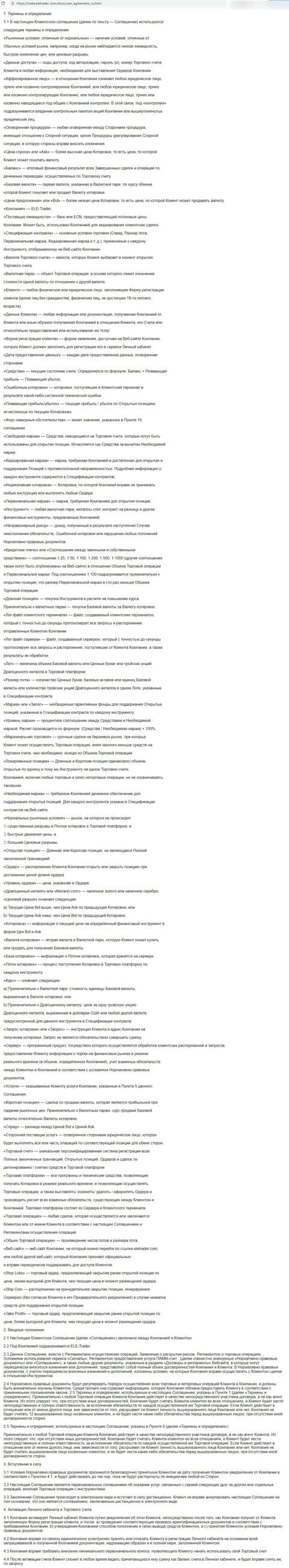 - Клиентское соглашение мошенников из авантюрной брокерской конторы ELETrader
