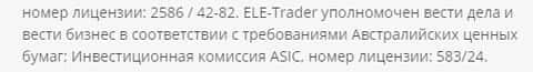 По информации с портала фальшивой конторы ELETrader, их деятельность регулируется еще и Инвестиционной комиссией ASIC, № лицензии зашкварного брокера: 583/24.