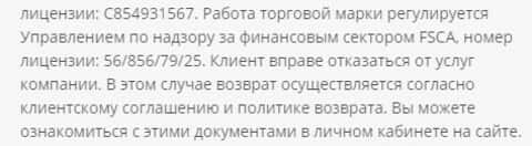 По данным от поддельной форекс организации, их деятельность регулируется еще и Комиссией по финансовым услугам Республики Маврикия, № лицензии центра: С854931567.