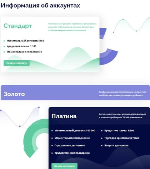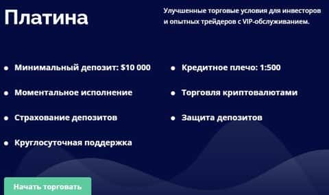 "Платина" - аккаунт предполагает вклад пользователя в размере 10000 долларов. Ему предоставляют целый список преимуществ, чтобы форекс трейдеры потеряли бдительность.