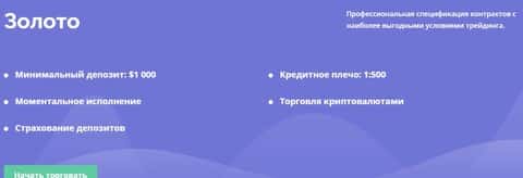"Золото" - аккаунт предполагает кредитное плечо 1:500, страхование депозитов, моментальное исполнение, депозит $1000. Но это все пустая болтовня и развод для новичков.