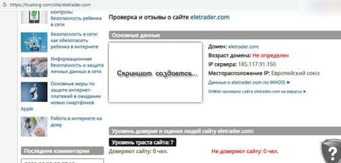 - Сведения об аферном валютном брокере ELETrader на интернет-странице scamadviser com