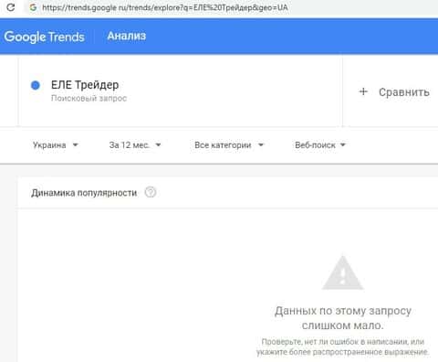 Количество запросов от интернет-пользователей по поиску доменного названия на русском языке "ЕЛЕ Трейдер" в поисковой системе Гугл Трендс также было очень небольшим.