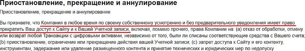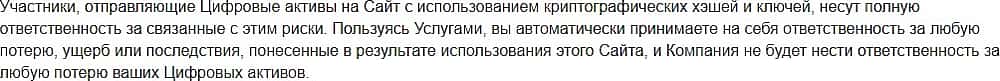Также воровитое учреждение Эмирекс придумавшее защиту передачи информации с помощью криптографии, не думает брать ответственность за ее надежность. Фактически лжедилинговый центр умывает руки. Ответственность по их мнению лежит целиком на трейдере. Криптообманщики Эмирекс продумали как выйти сухими из воды.