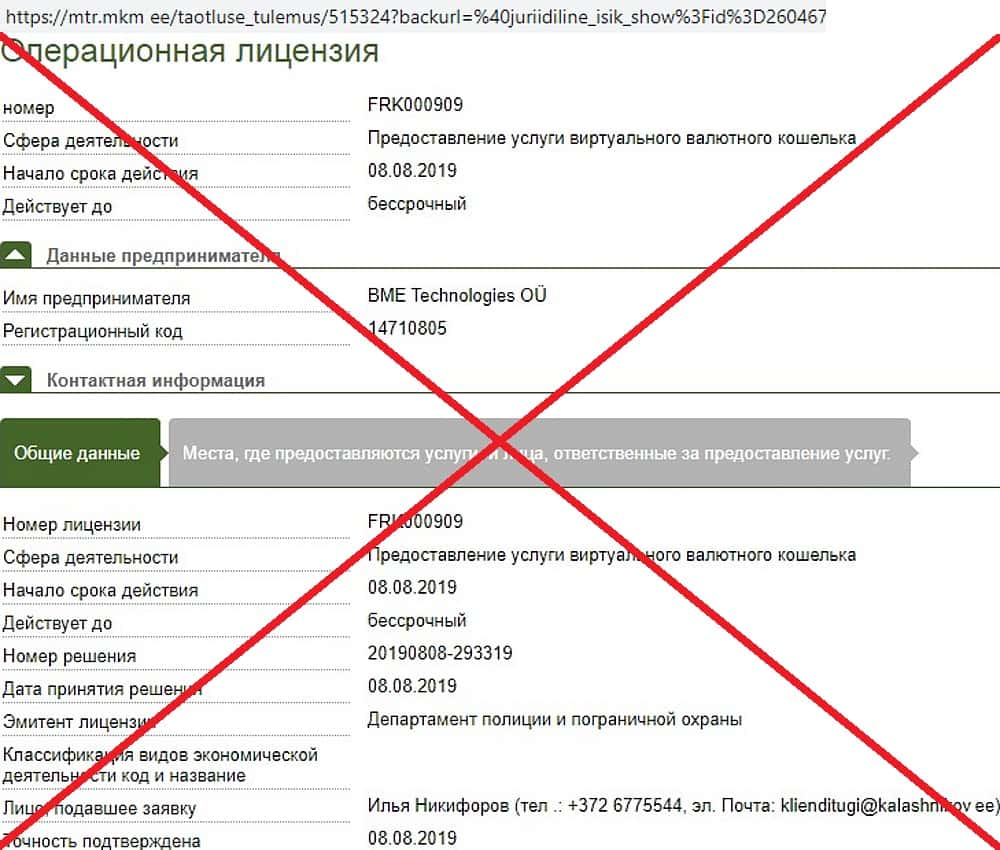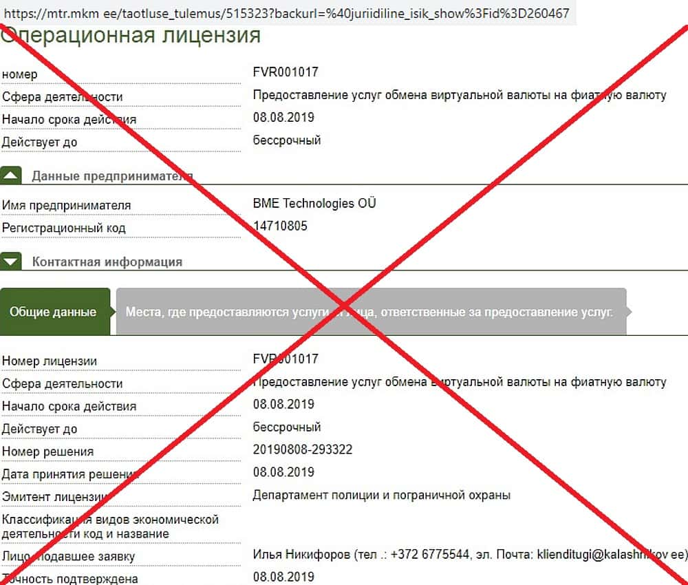 Вот сейчас будьте внимательны. Обманом промышляющая организация Эмирекс, она же BMU Technologies OU получила лицензию на свою экономическую деятельность в Эстонии. Не может ли казаться странным, что разрешение на ведение финансовой деятельности в Объединенных Арабских Эмиратах выдает полиция и пограничная служба Эстонии?