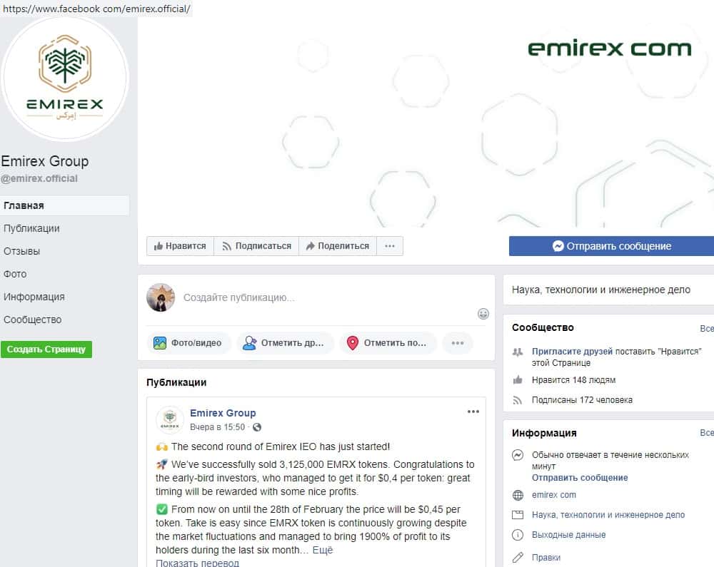 В поисках легкой наживы, компания легкого поведения Emirex Com, внедрилась во все социальные сети, до которых смогли только дотянуться их цепкие лапы. Поскольку контора необремененная совестью Emirex Com ищет цели своей аферы где угодно, то лучший вариант поиска жертвы - это международная сеть facebook com.