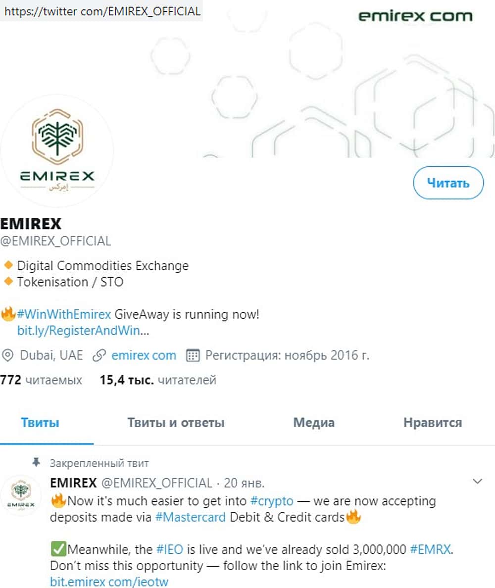 Засветились также представители криминального сообщества Emirex Com и в twitter com. Публикуя короткие сообщения о псевдоуспешности, негодяи Emirex Com разводят людей на деньги. Не подозревая об очередном хайпе, люди с упоением читают ложь и попадаются на крючок наглой мошеннической структуры Emirex Com.