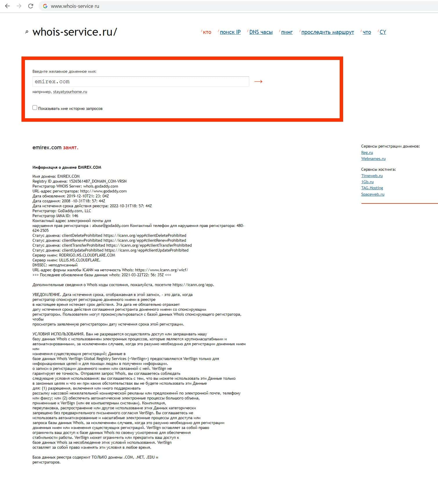 Кто владеет доменным адресом конторы аферистов Emirex Com?