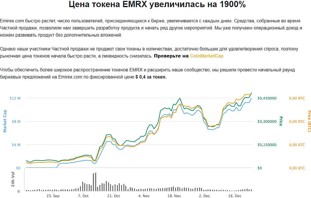 Не ограничились преступники Эмирекс одной только псевдобиржей и выпустили свою якобы криптовалюту. Чем капитализирована эта лжевалюта - непонятно, но обманная контора Эмирекс утверждает, что она якобы пользуется спросом и растет в цене. Воздух впаривают своим клиентам ворюги Эмирекс.