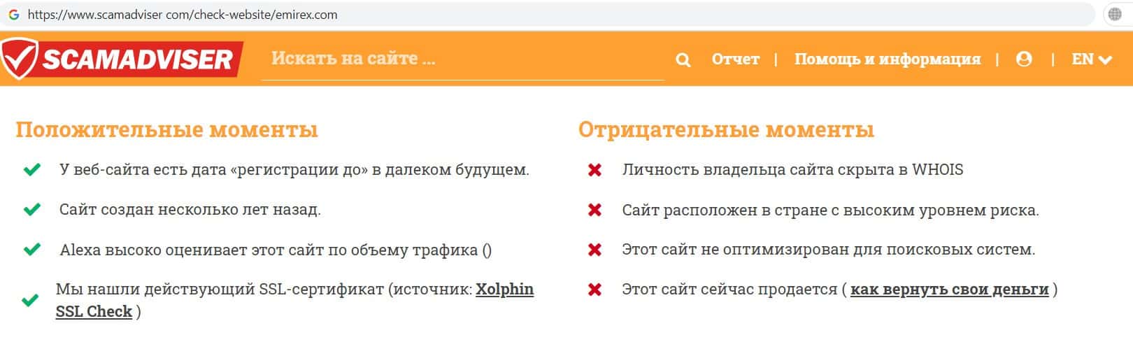 - Мнение интернет ресурса о сайте махинаторов Эмирекс