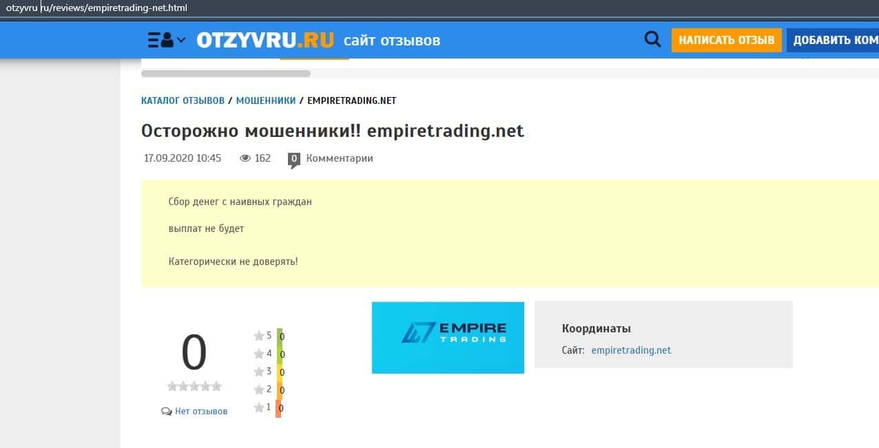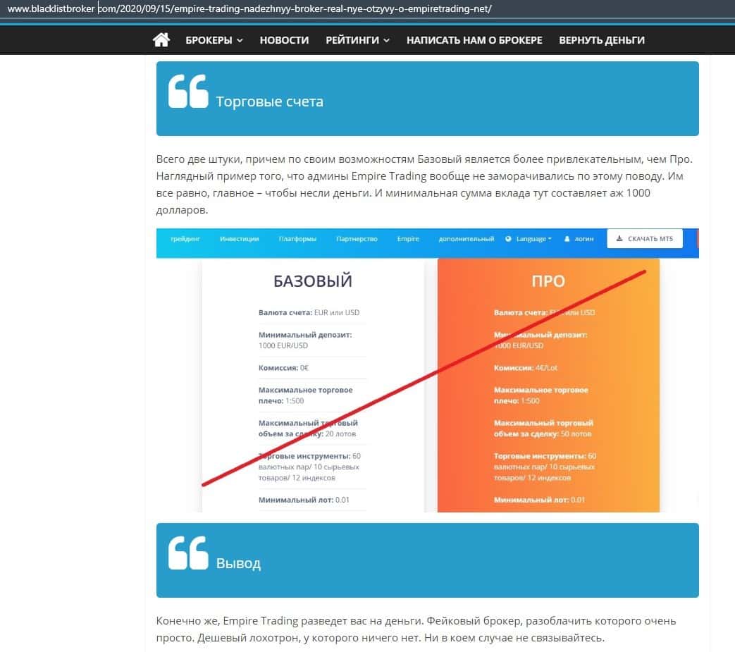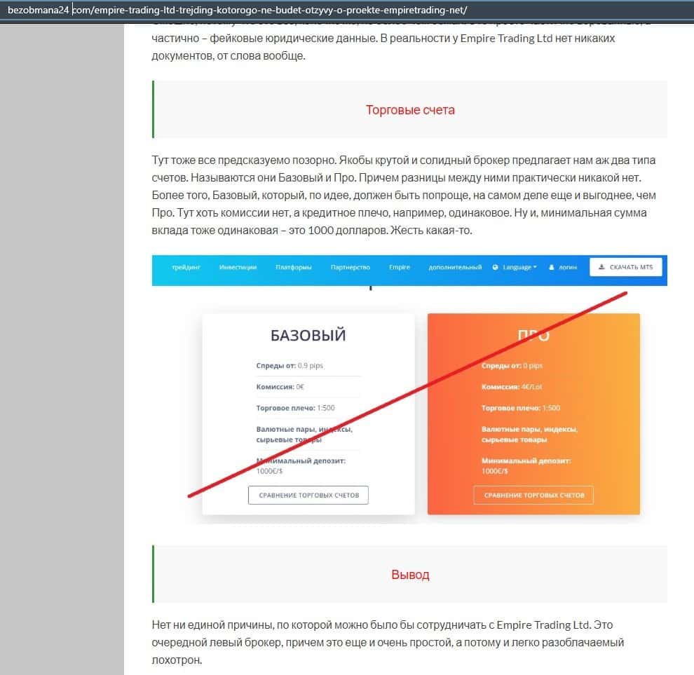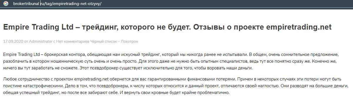 Также в сети интернет описано, что контора EmpireTrading Net разведет всех вас на деньги, так как это фейковый брокер и разоблачить такую шарагу может даже обычный школьник.