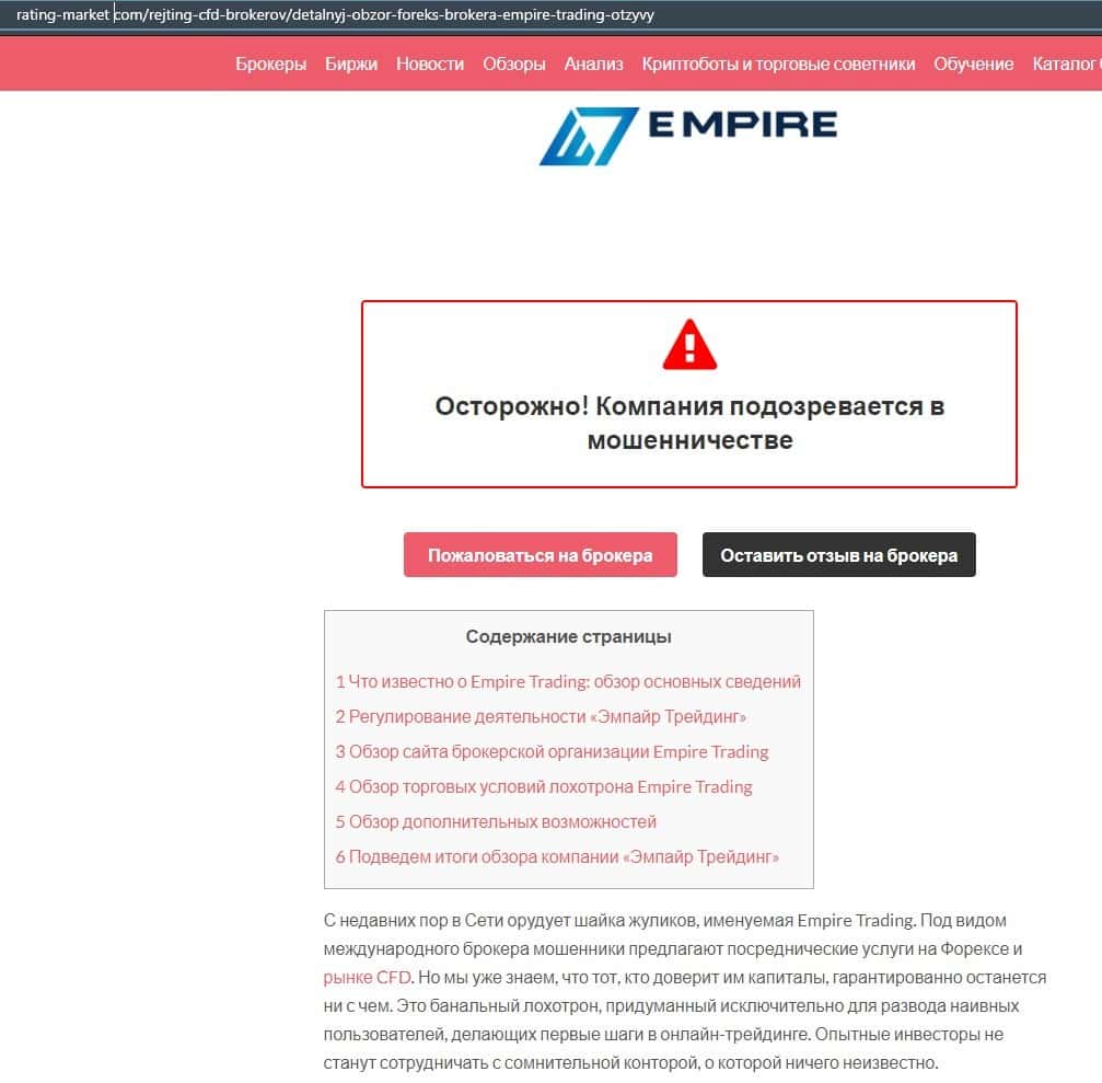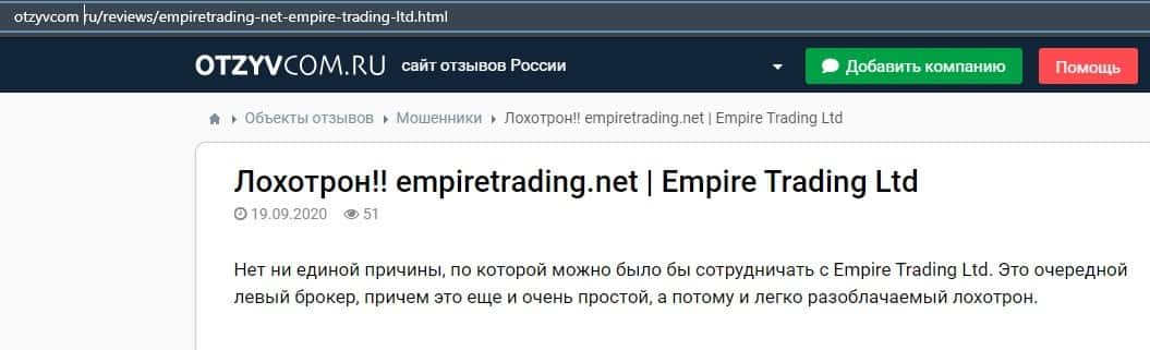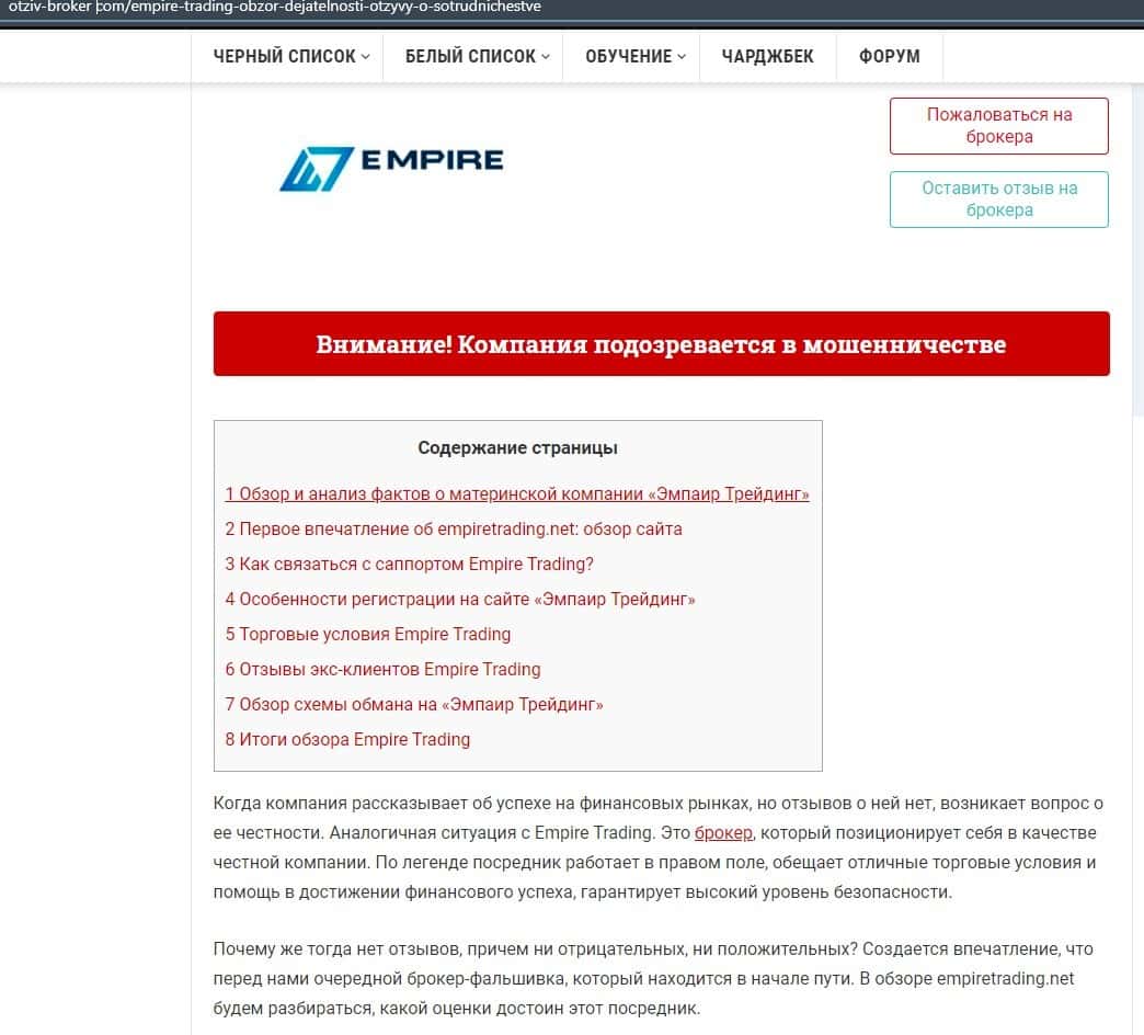 - Информация о мошеннической конторе Эмпайр Трейдинг