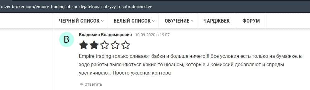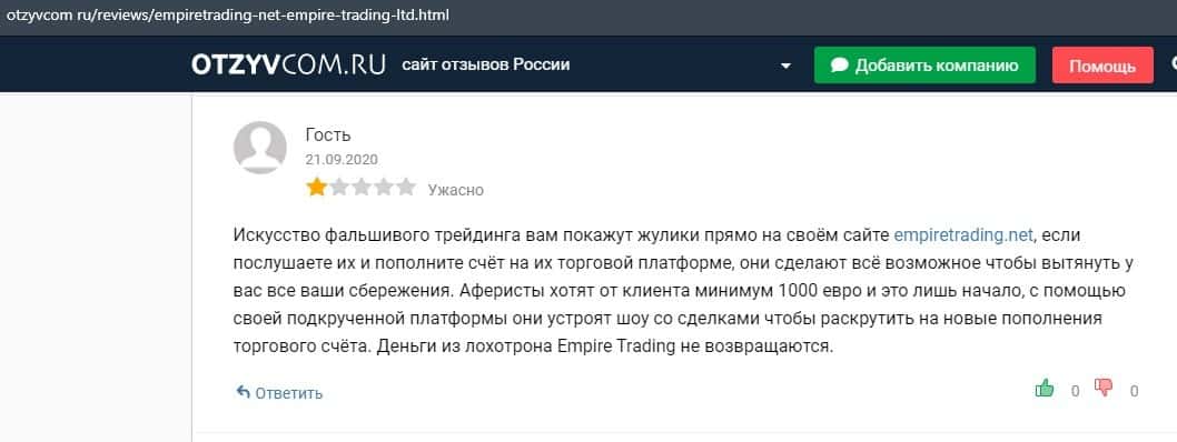 - Отзывы клиентов о дилинговой шараге Эмпайр Трейдинг