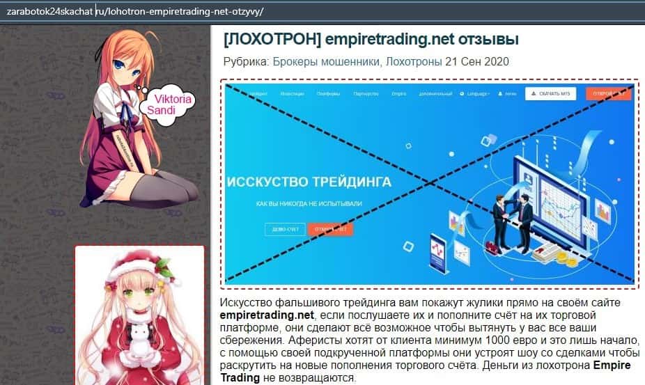 В интернете о конторе Эмпайр Трейдинг не много отзывов, а вот статей достаточно. Все уже понимают, что это обычный развод и мало кто ведется на них, которая хочет забрать деньги.