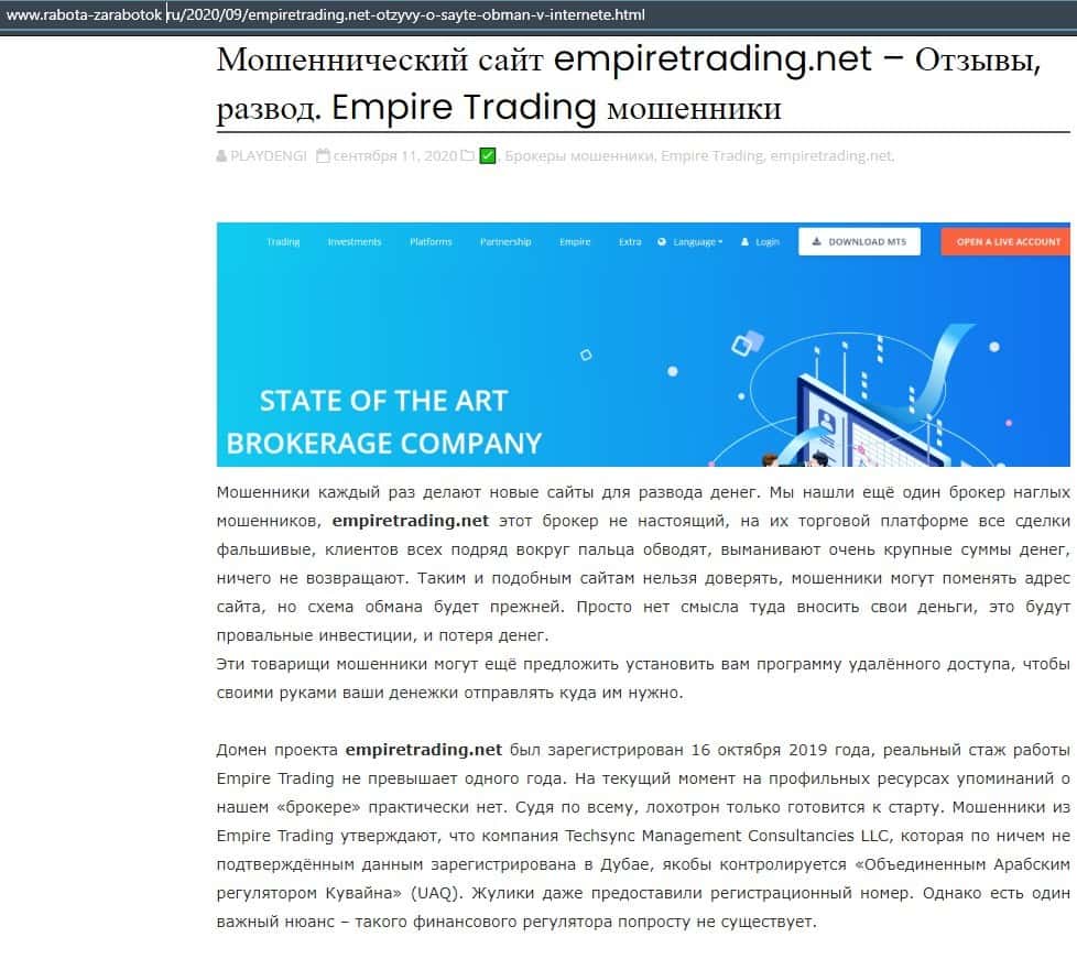 Информация о мошеннической конторе Эмпайр Трейдинг