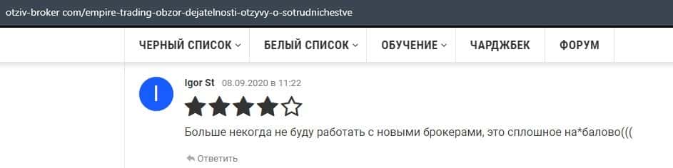 Отзывы клиентов о дилинговой шараге Эмпайр Трейдинг