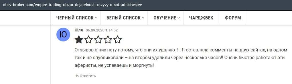 Контора Эмпайр Трейдинг занимается подчисткой негативных отзывов в интернете. Они с помощью денег пытаются очистить свое имя и протянуть немного дольше чем им положено.
