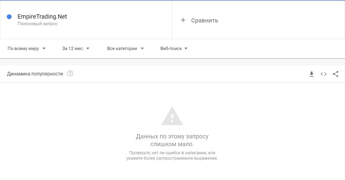 Сайт конторы Эмпайр Трейдинг не популярный по запросу самого сайта "EmpireTrading.Net" и не набрал по Гугл Трендс ни одного показа за месяц.