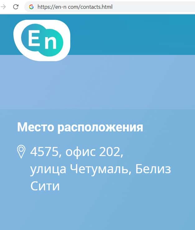 Так же лохотрон EN N указал адрес своего главного офиса. Но конечно же никакого офиса у этих мошенников нет, а данная информация является просто фальшивкой. Адрес махинаторов: