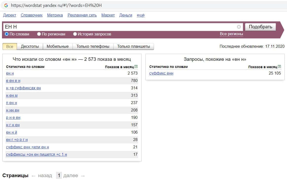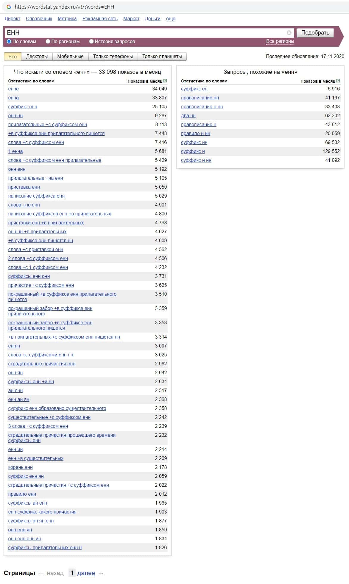 Далее мы проверили количество запросов компании ЕН Н по русскоязычному названию фирмы, но без пробела, а именно "ЕНН". Этот запрос пользователи выполнили 33098 раз.