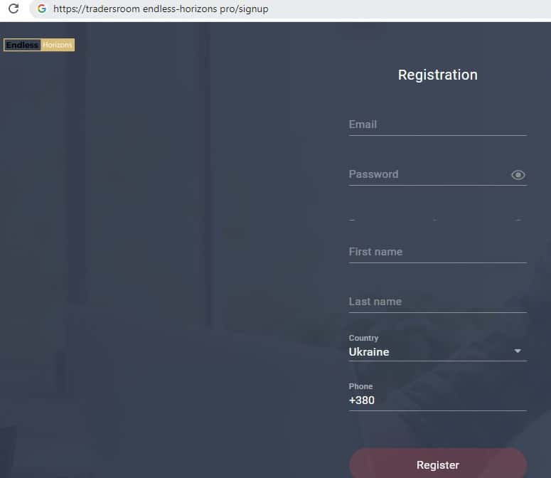 Также на своем сайте негодяи Endless-Horizons Pro разместили третью ссылку, по которой вкладчики могут пройти регистрацию, оставить контактные данные, а мошенники смогут заполучить деньги клиентов.