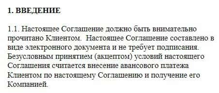 Пункт 1.1. является первым первым звоночком, что подписание договора трейдером с Эндлесс Горизонс окажется полным фиаско, благодаря которому дилинговый центр обогатится.