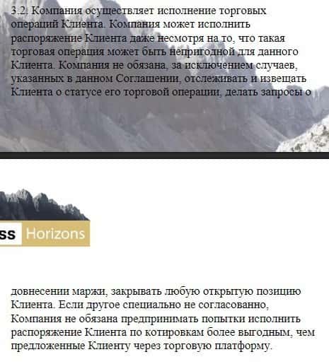 Согласно скриншоту Endless-Horizons пытается всячески, не совсем законными манипуляциями, прописав это в договоре, не дать вкладчикам реально заработать на рынке форекс.