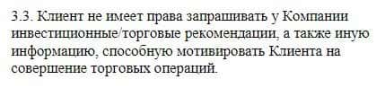 Пункт 3.3. уничтожает все явные признаки здравого смысла: клиент не имеет права запрашивать у брокера сведения о совершении торговых операций. Как такое можно выдумать?