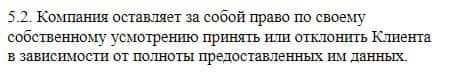 В пункте 5.2. сообщается о том, что лжедилер Эндлесс Горизонс вправе по собственному усмотрению отклонять потенциального форекс игрока без указания веского на то основания.