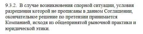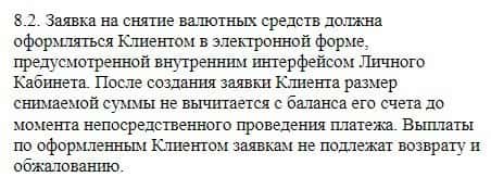 Пункт 8.2. - отдельный перл соглашения, не позволяющий трейдеру даже обжаловать поданную заявку. Это, как минимум, нарушение конституционного права любого гражданина.