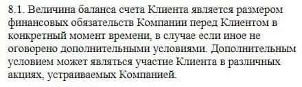 В пункте 8.1. указано о неравном распределении размером финансовых обязательств злодеев Endless-Horizons и величиной баланса торгового счета валютного трейдера.