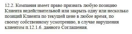 В договоре также говорится о том, что подставной брокер Endless-Horizons может в любое время признать любую позицию трейдера недействительной. Но это сущий беспредел.