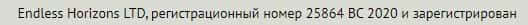 Согласно данным с площадки проходимцев Эндлесс Горизонс, то они осуществляют брокерскую деятельность на основании регистрационного номера 25864 BC 2020, что вызывает веские сомнения.
