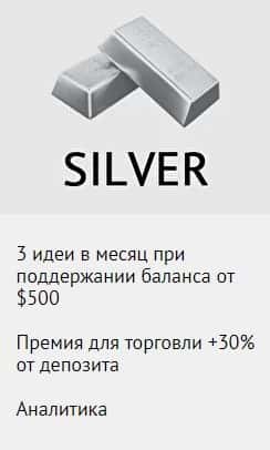 Основным преимуществом типа счет "Silver" является наличие аналитики, премия для торговли +30% от депозита. Обратная сторона медали - слив депозитов и невывод денег.