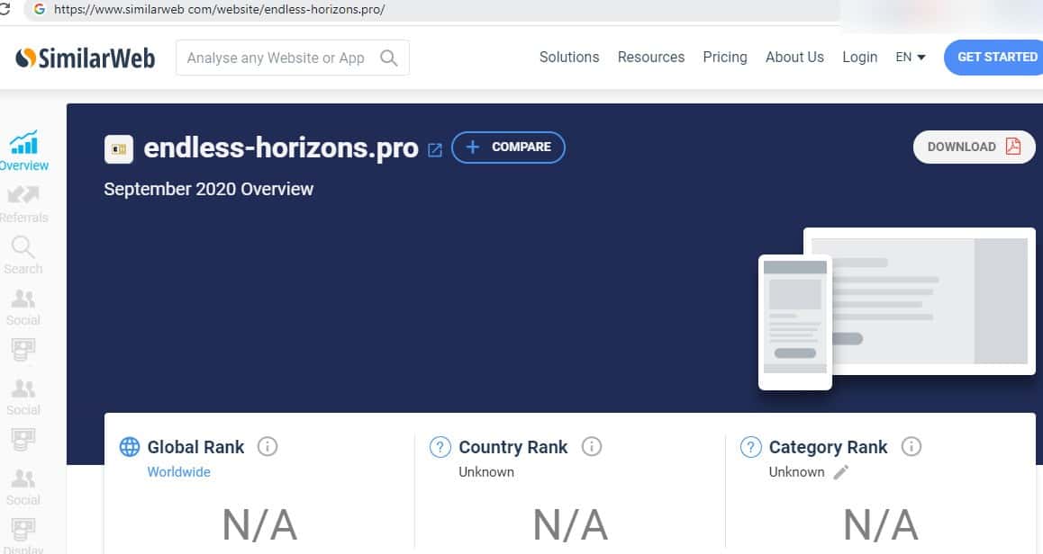 Интернет-сайт similarweb com не имеет никакой точной информации о площадке поддельной брокерской конторы Endless-Horizons Pro. Лучше не связываться с подобными ворюгами.