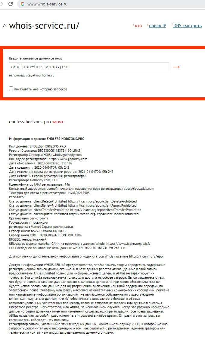 - Возраст домена мошеннической форекс компании Эндлесс Горизонс