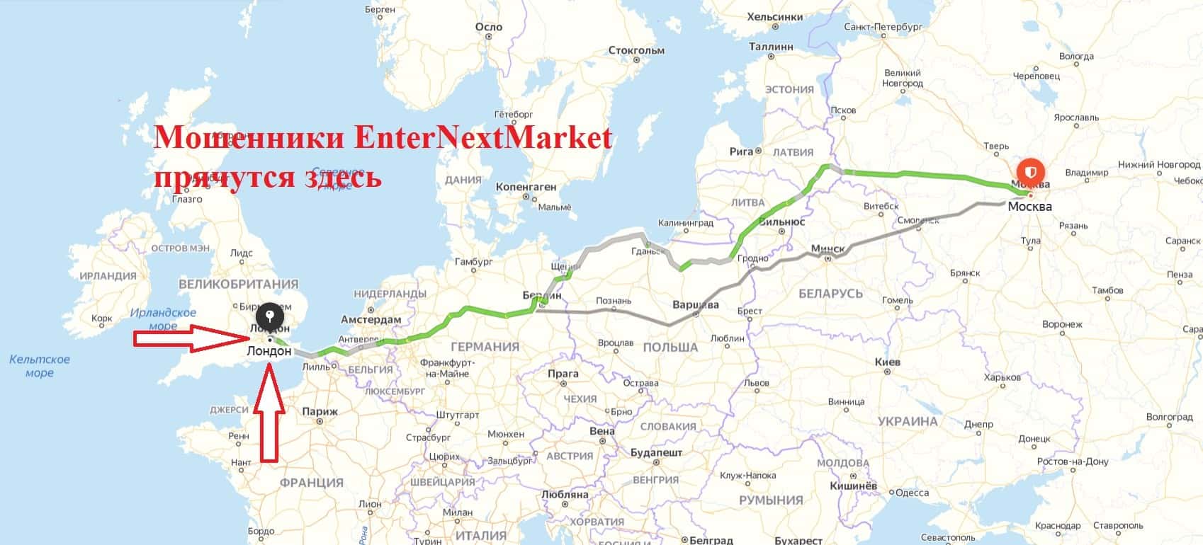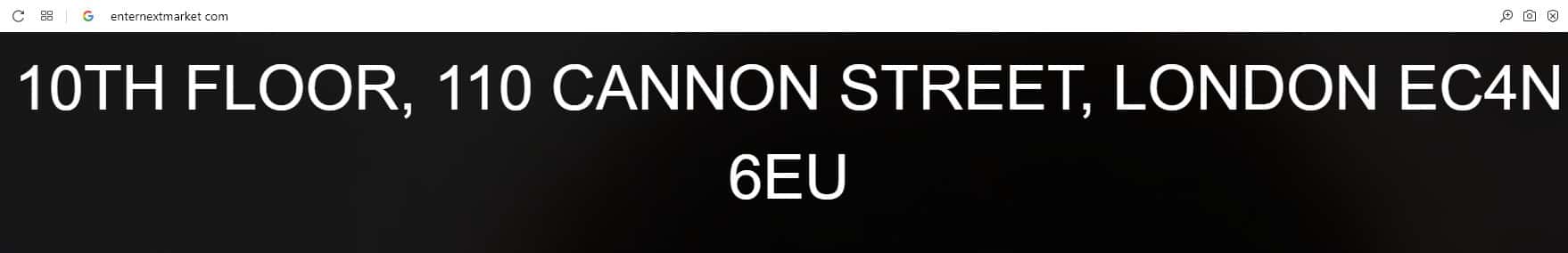 Сведения о месте регистрации EnterNextMarket фальшивы, так как большинство скам-проектов у себя на сайте указывают адрес в Лондоне для приманки очередного лоха.