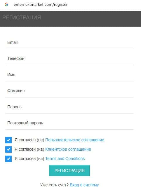 - Клиентское соглашение на интернет-ресурсе шулеров EnterNextMarket