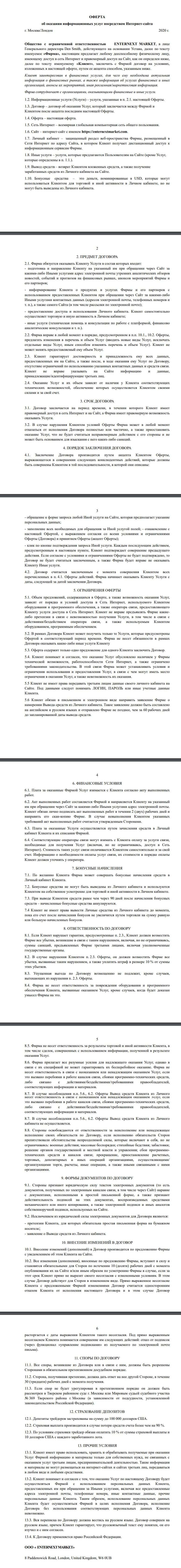 Клиентское соглашение на интернет-ресурсе шулеров EnterNextMarket