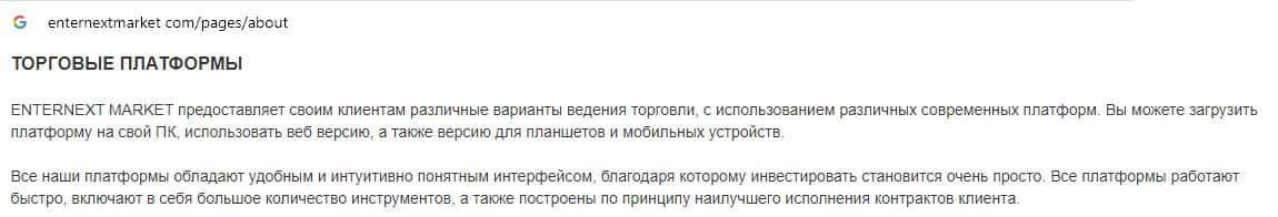 - Торговая платформа на онлайн-портале скам-брокера Энтер Некст Маркет