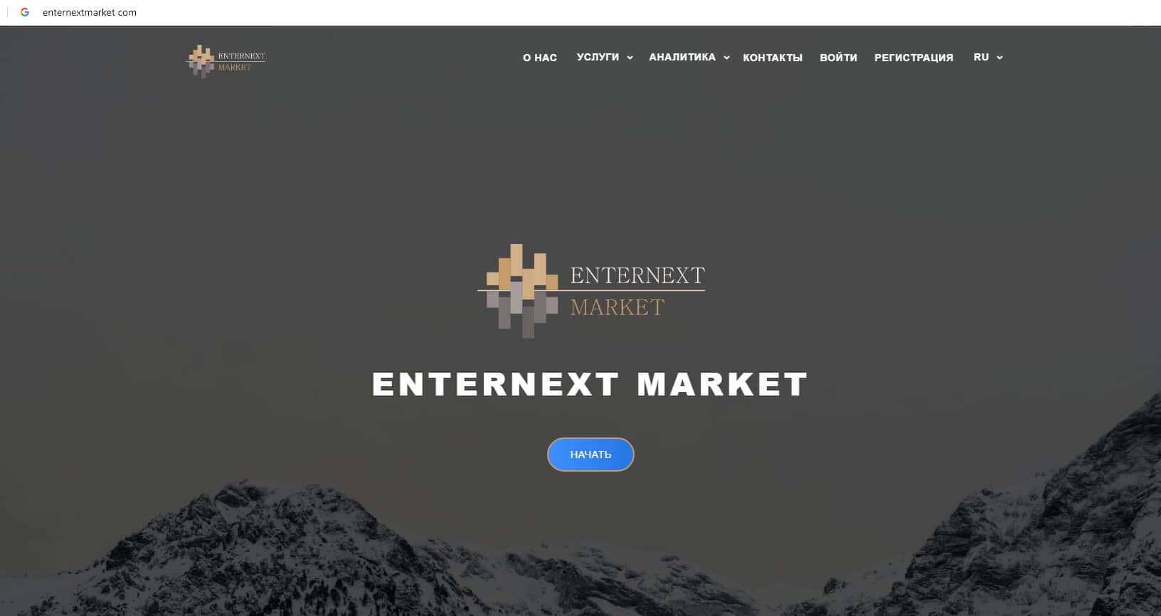 - Обзор главной страницы мошеннической организации EnterNextMarket
