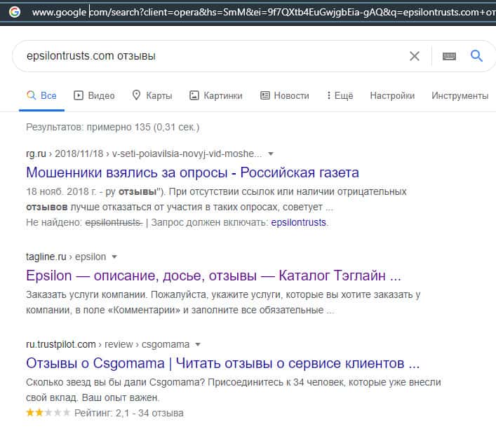 - Краткий обзор сайта мошенников Епсилон Трастс
