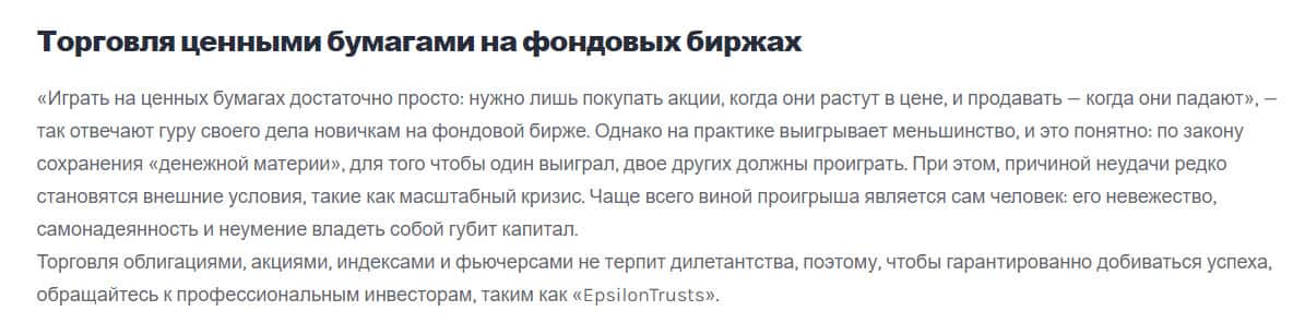 - Не торгуйте ценными бумагами в лохотроне EpsilonTrusts