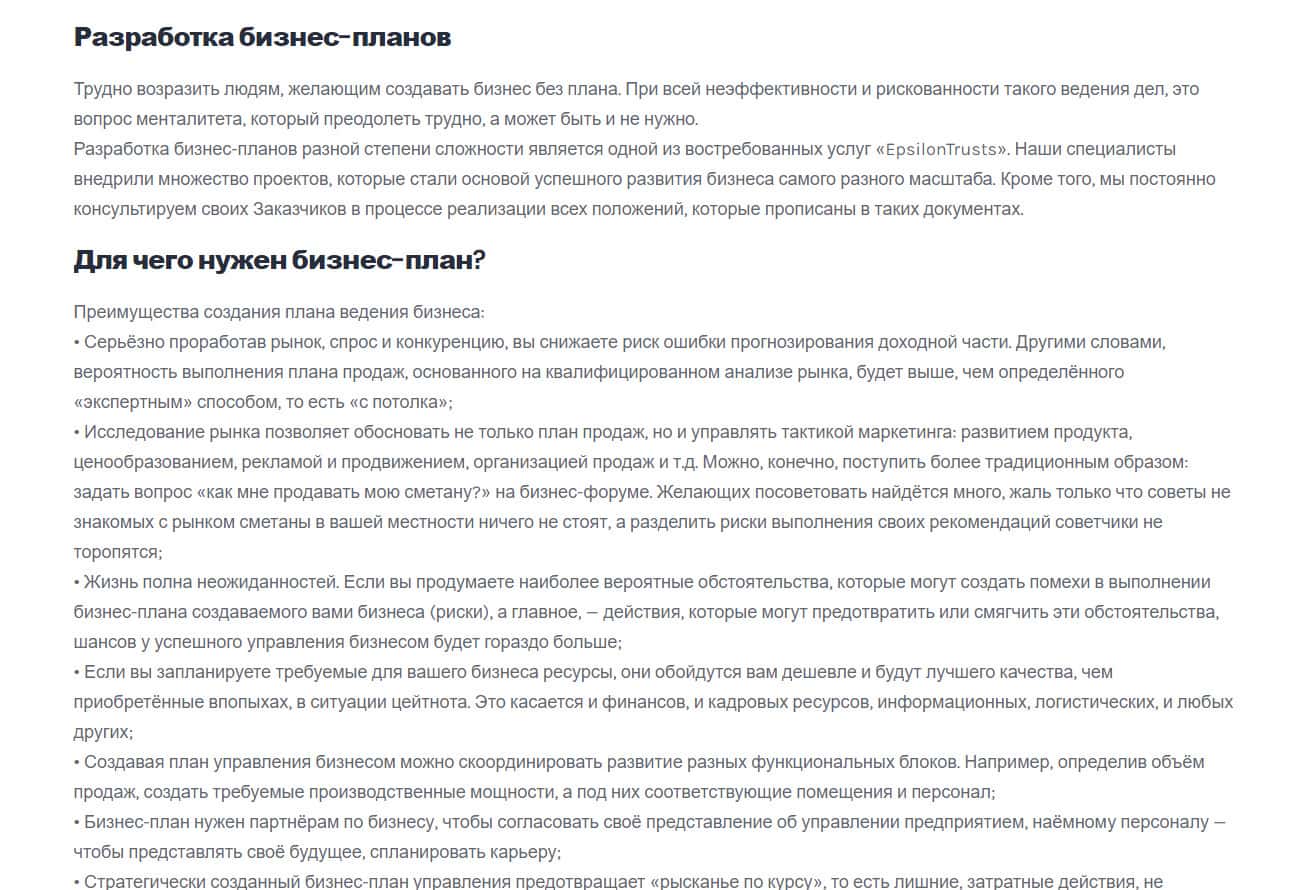 - Контора EpsilonTrusts не смогла создать свой бизнес-план