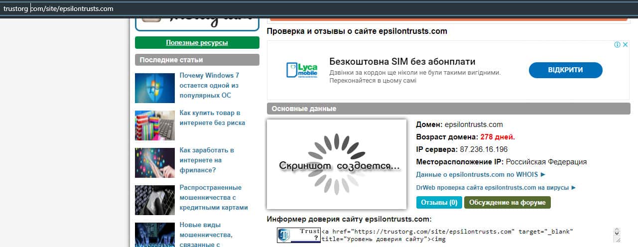 Сайт лохотрона EpsilonTrusts малопопулярен