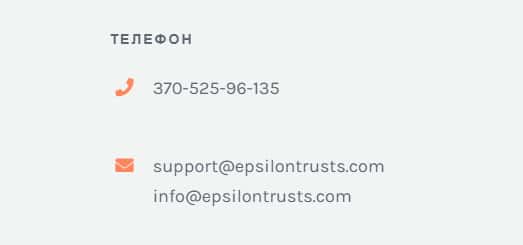 Чтобы связаться с конторой EpsilonTrusts, они на своем портале оставили номер телефона и две электронные почты. Если вы считаете, что получится с ними связаться, когда дело будет касаться вывода средств, то вы глубоко ошибаетесь, так как этого в их работе не предусмотрено. И все же оставим данные ниже: